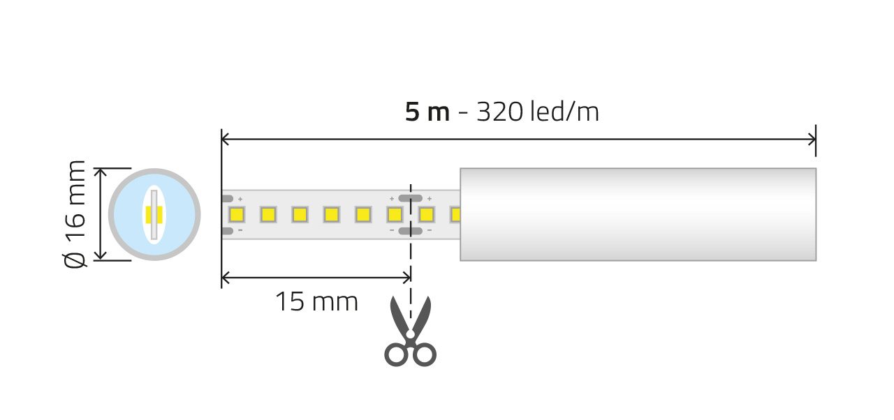 5 mètre de tube LED tressé, 24V, 6W/m, 700 lumens/m